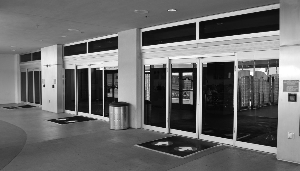 Automatic sliding doors in shopping centers are a common example of Design for all, as they provide accessibility and convenience for a wide range of individuals providing easy access and convenience for everyone, without the need to manually open or close doors.